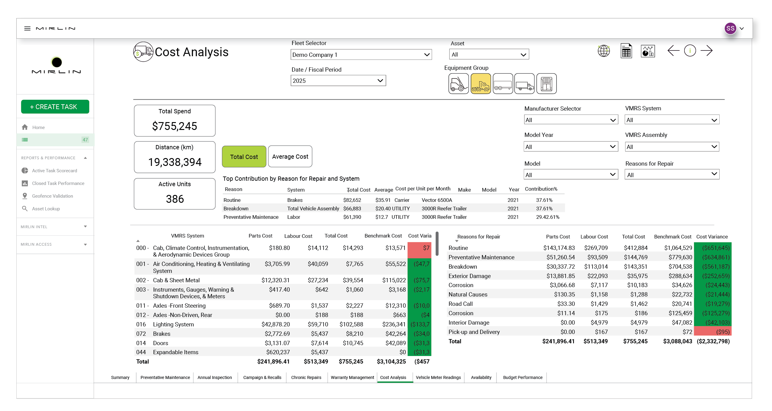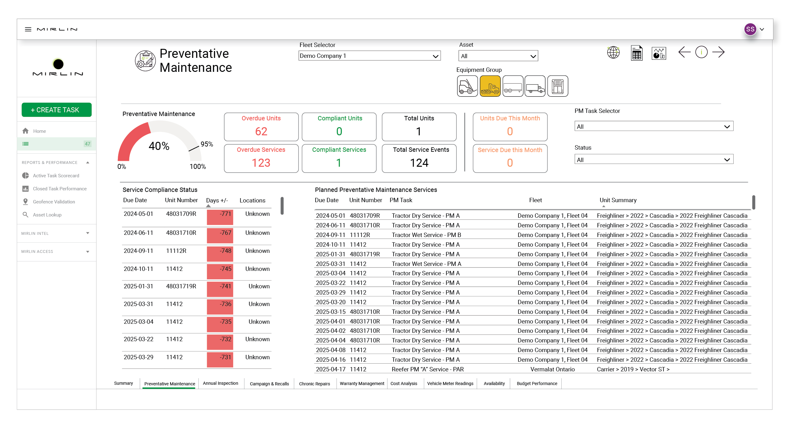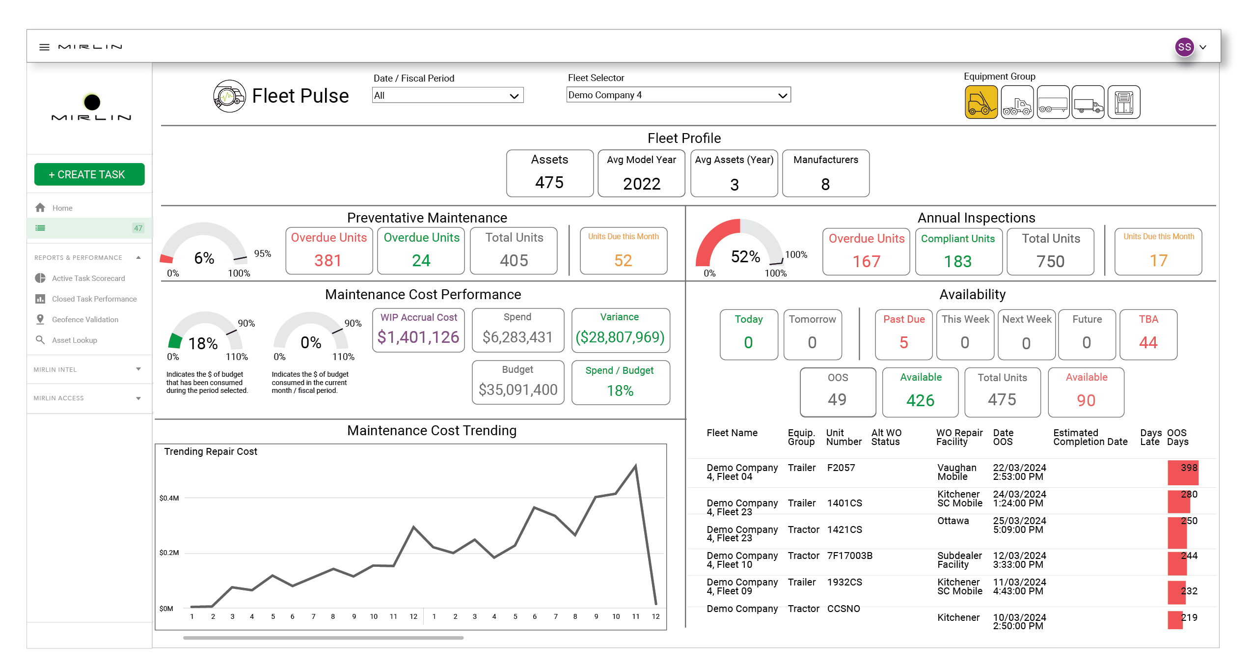 - Fleet profile and maintenance software functionality